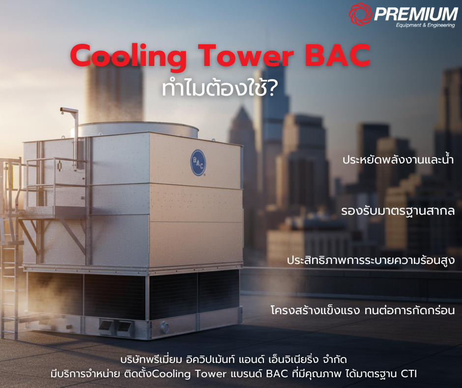 วันนี้ พรีเมี่ยม จะพาท่านมาทำความรู้จักกับ Cooling Tower แบรนด์ BAC (Baltimore Aircoil Company) แบรนด์ชั้นนำระดับโลกด้านเทคโนโลยีการระบายความร้อน ว่าทำไมโรงงานอุตสาหกรรมจำนวนมากจึงเลือกใช้ BAC เป็นคำตอบสุดท้ายในการลงทุนด้าน Cooling System ที่คุ้มค่าและยั่งยืนที่สุด